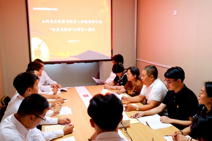 为进一步推动思想解放,凝聚发展力量,实现事业发展“大提升”,7月12日,三味书院在2209会议室开展了第三期解放思想大讨论活动。本次讨论的主题是“如何充分发挥书院育人功能创新打造“全员书院制”品牌育人模式”,活动由三味书院党总支书记、院长吕立宁主持,全体辅导员及17名学生参加。