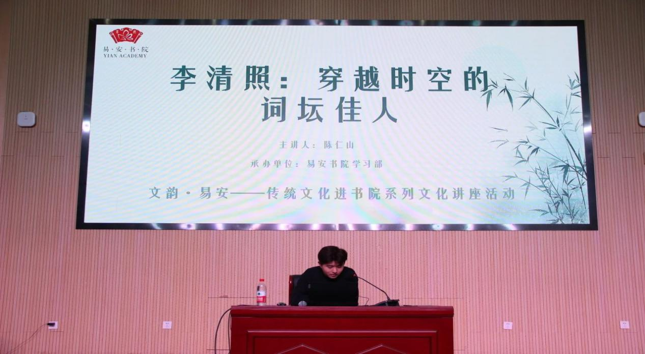 为让同学们更好地体悟中华优秀传统文化,理解易安书院的“二安”文化,4月11日,易安书院在图书行政楼东报告厅举办了“李清照:穿越时空的词坛佳人”文化讲座。讲座由易安书院辅导员陈仁山主讲,易安书院22级、23级学生共计260余人参加。