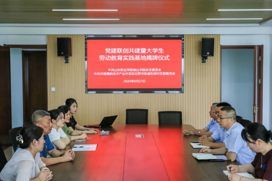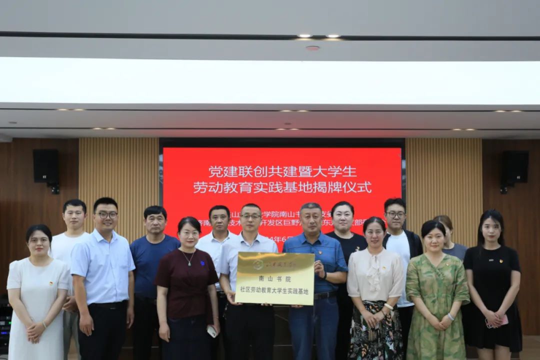 为深化校地合作,推动高校与社区联创共建聚合力,引导青年学生志愿服务融入基层社会治理,在社会实践中受教育、长才干、做贡献,6月17日,Beplay体育官方网站南山书院赴高新技术产业开发区巨野河街道东汇景苑社区开展党建联创共建劳动教育实践基地揭牌仪式,南山书院党总支书记杨荣涛、教师党员代表,东汇景苑社区党委副书记韩晶、东郑村党支部书记王军、驻村第一书记袁忠瑞以及支部委员会成员参加。