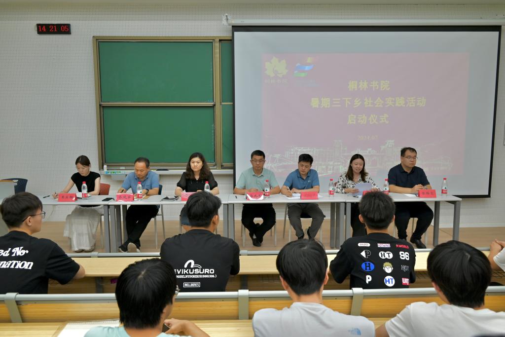 实践团队出发前,桐林书院举行动员大会和启动仪式。桐林书院院长郭兆军为社会实践团队授旗,老师们分别讲话并布置调研任务,提醒团队成员做好准备并带着问题出发学习。