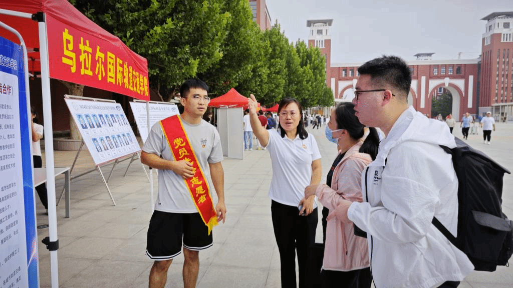 迎新现场一片繁忙景象,党员教师们肩披红色志愿肩带,佩戴党员徽章,在各自的岗位上认真履行职责。他们热情地迎接每一位新生,耐心指导报到流程,仔细解答家长们关于中俄合作办学的疑问,及时处理现场的各种突发情况。他们的热情与专业,让新生和家长们感受到了党组织的关怀与温暖。