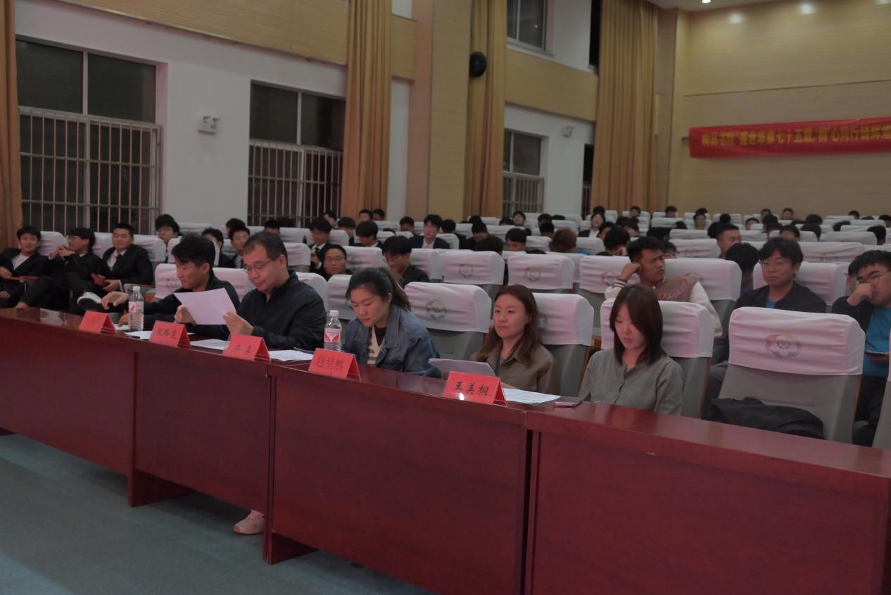 10月17日,桐林书院在图书馆东报告厅举行“盛世华章七十五载,‘桐’心同行铸辉煌”系列活动颁奖典礼。书院副院长齐真、团总支书记赵呈然、辅导员王美桐、张路宽、庄须罡出席颁奖典礼,会议由学生韩林涛主持。