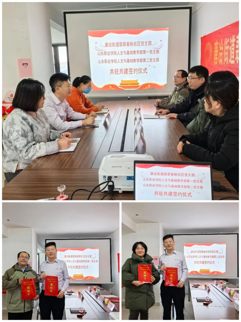 人文与基础教学部第一党支部、第二党支部分别与翡翠春秋社区党支部签订《共驻共建协议书》,明确了共建目标、共建内容。