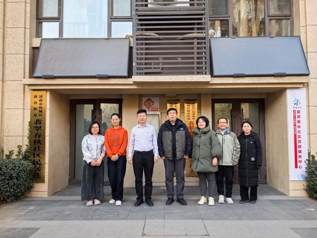为加强基层党组织建设,推动“双报到”党建服务活动落地落实,充分发挥党组织共驻共建作用,12月25日,人文与基础教学部党总支与唐冶街道翡翠春秋社区党支部开展“党建引领聚合力 结对共建谱新篇”联创共建活动。人文与基础教学部党总支书记兼主任王伟、副书记于帆、副主任王昊、党总支组织委员王伟伟、翡翠春秋社区党支部书记闫强、副书记江虹等参加活动。