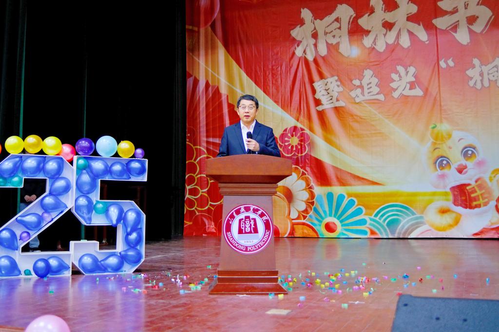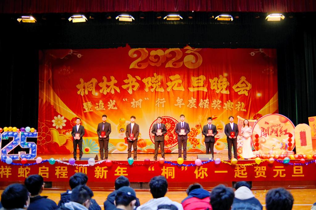 为展示桐林学子的青春风貌,营造热闹的节日氛围,12月27日,桐林书院在南益馆举行2025年元旦晚会暨追光“桐”行年度颁奖典礼。桐林书院党总支书记、院长郭兆军,副院长齐真出席活动,桐林书院全体师生参加。