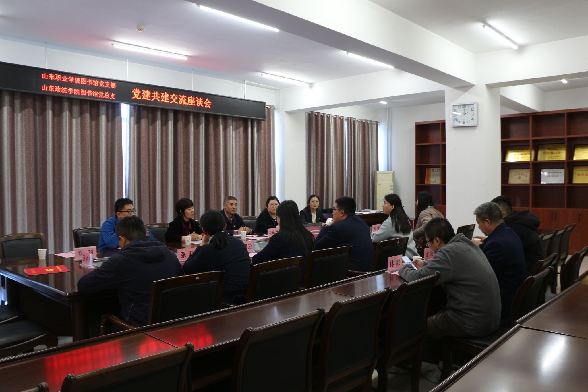 在缅怀活动圆满结束后,图书馆党支部与山东政法学院图书馆党总支举办了交流座谈会,双方党组织负责人分别就各自党组织的建设情况、业务工作特色以及在党建与业务融合方面的宝贵经验和有效做法做了详细介绍。随后,双方围绕如何加强党建引领,推动图书馆事业高质量发展进行了深入探讨,在服务育人、阅读推广及智慧化建设等方面达成了多项共识。