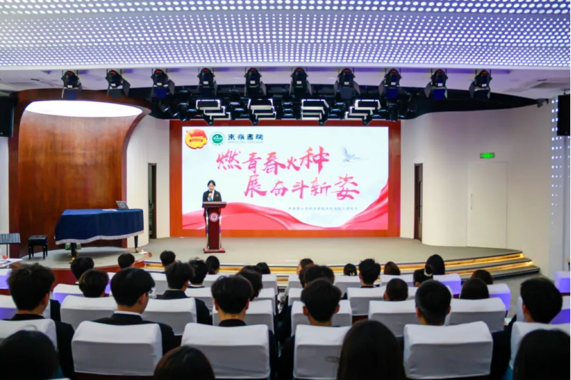 4月15日,东岭书院举行“燃青春火种·展奋斗新姿”新团员入团仪式。东岭书院部分辅导员、学生代表和新团员共56人参会,仪式由团员代表蓝菲菲主持。