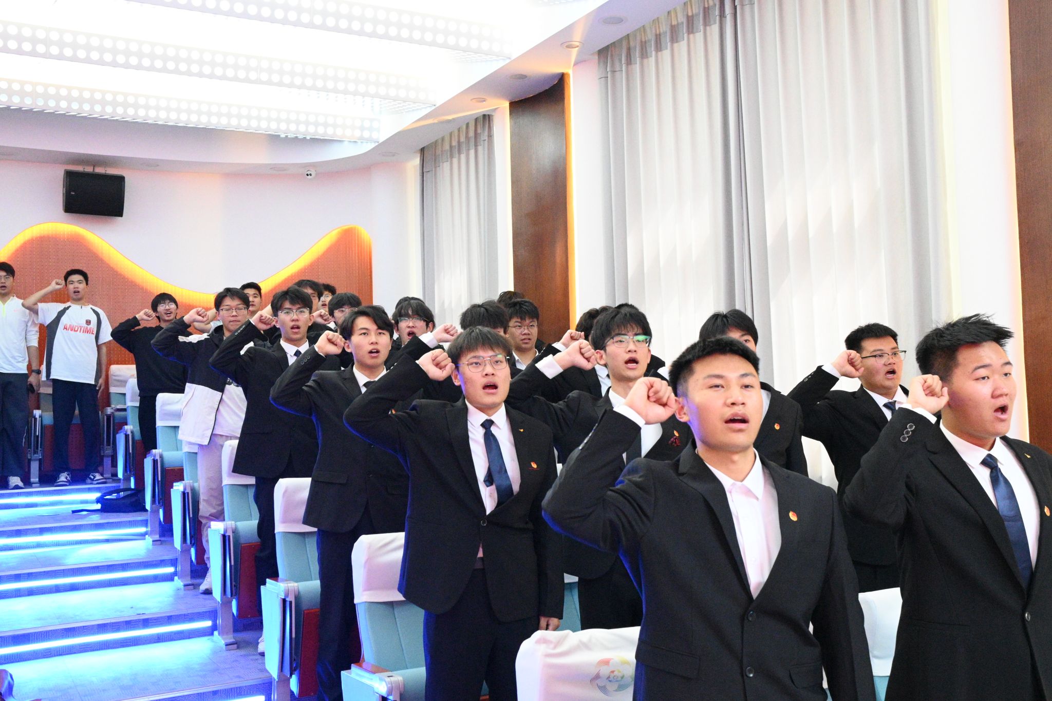 全体新团员面向团旗庄严宣誓,表达对共青团组织的忠诚和为共产主义事业奋斗的决心。