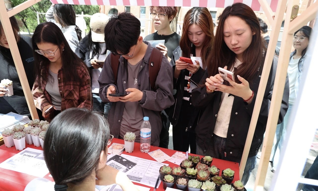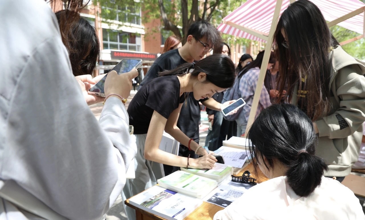 活动现场,“以书换绿植”区域人气高涨,同学们携闲置书籍前来,让旧书实现“绿色流转”,同时将绿植带回家中,为生活增添清新。“字里生花”留言墙前,大家认真书写读书感悟,文字间迸发思想火花、传递真挚情感,成为活动温馨注脚。