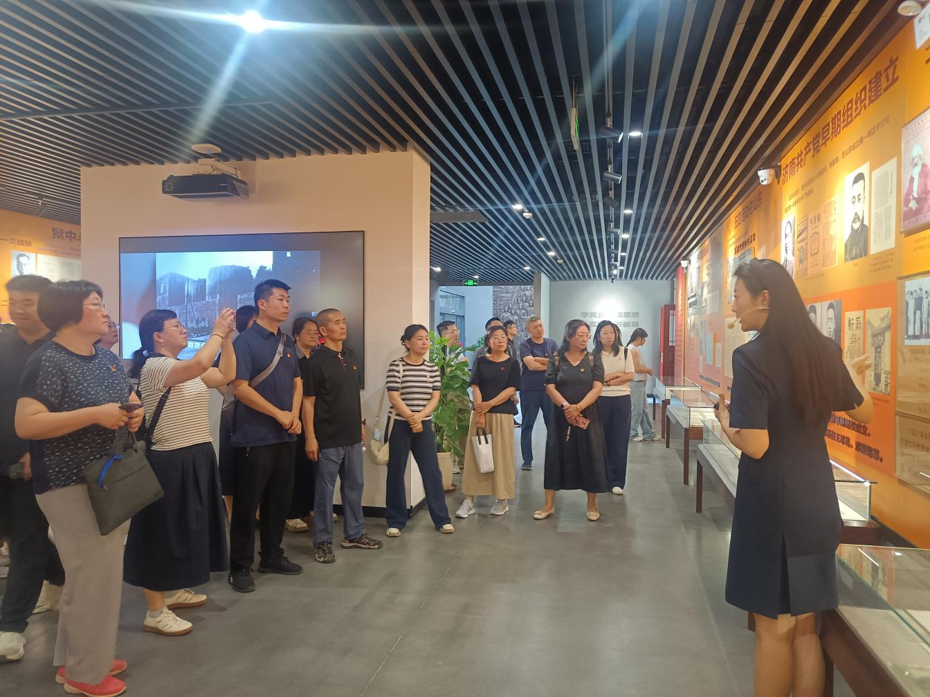 在讲解员的带领下,全体党员首先参观了“穿越时空的党课”主题展览。展览通过展示历史照片、实物展品和文献资料,生动再现了邓恩铭、刘谦初等22位烈士在白色恐怖下坚持斗争、为信仰慷慨赴死的英雄事迹。参观完主题展览后,全体党员面向党旗,举起右拳,重温入党誓词,回顾入党初心,表达了对理想信念的坚定追求。