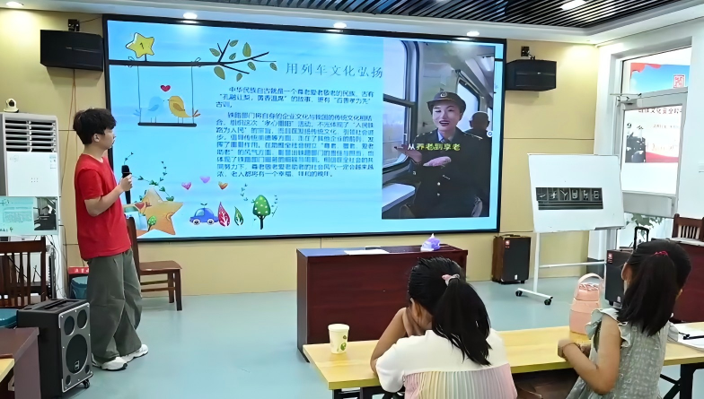 孝道润心。“百善孝为先”,队员们用亲切易懂的语言和生动的故事,向小朋友们讲述“孝”文化。课堂上,队员们通过情景剧演绎孝文化,从“银发列车”大爱到“为母洗脚”小事,引导孩子们思考:“孝”就在身边。小朋友们听得入神,纷纷举起小手,分享自己在家帮爸爸妈妈做的事,课堂洋溢着浓浓的温情与感动。