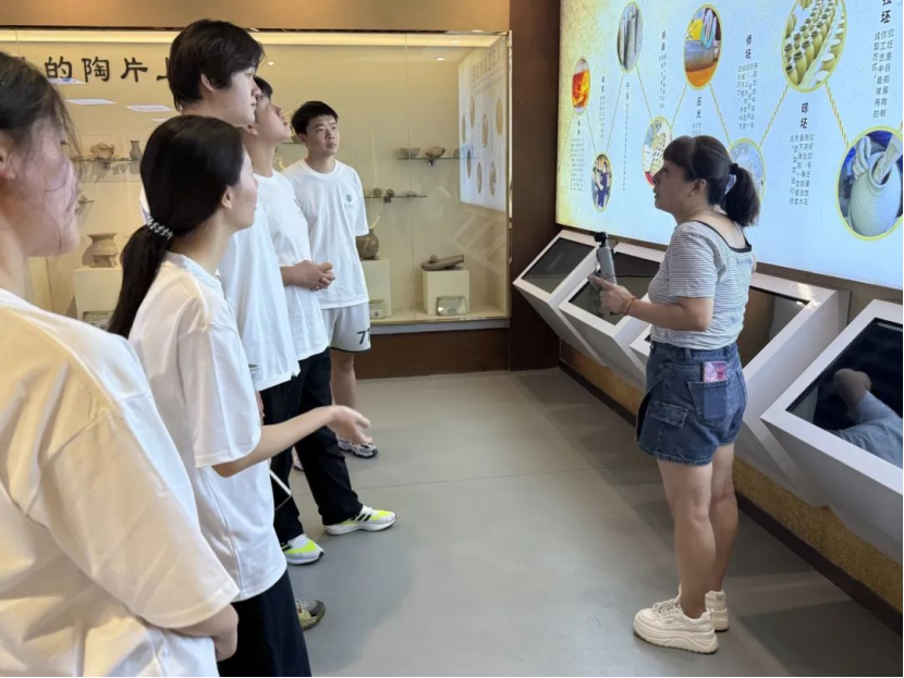 实践队首先前往中国龙山文化黑陶艺术馆,在黑陶馆负责人的带领下,实践队系统回顾了龙山文化自城子崖遗址发现以来的百年研究脉络,了解了它的起源与发展历程,并近距离参观了馆藏的各类黑陶精品。同时,黑陶馆负责人逐层剖析了龙山文化“黑如漆、亮如镜”黑陶瓶的八道工序,让队员们直观领略史前匠人的巧思与智慧。