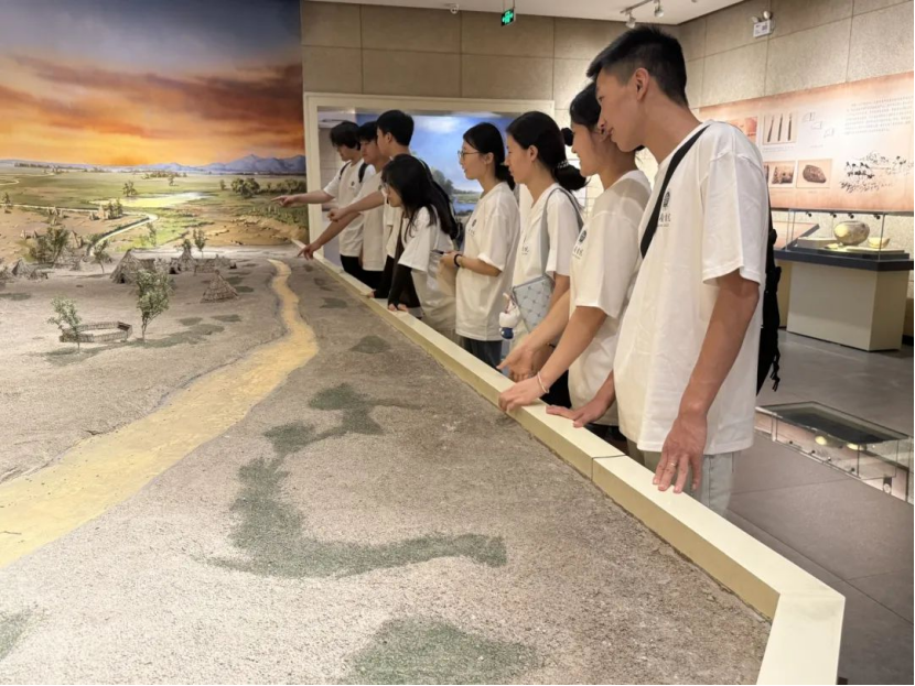午后,实践队转赴城子崖博物馆。队员们沿展线依次驻足,在文物与文字的交织中领会龙山先民“择高而居、依河而生”的聚落智慧,近距离品鉴蛋壳黑陶的极致工艺。随着展柜中龙山文化典型器物的逐层呈现,队员们直观感知到黄河泛滥与先民聚落迁徙的历史关联,在“一器一时代”的沉浸体验中,读懂了黄河下游史前文明绵延不绝的生命脉搏。