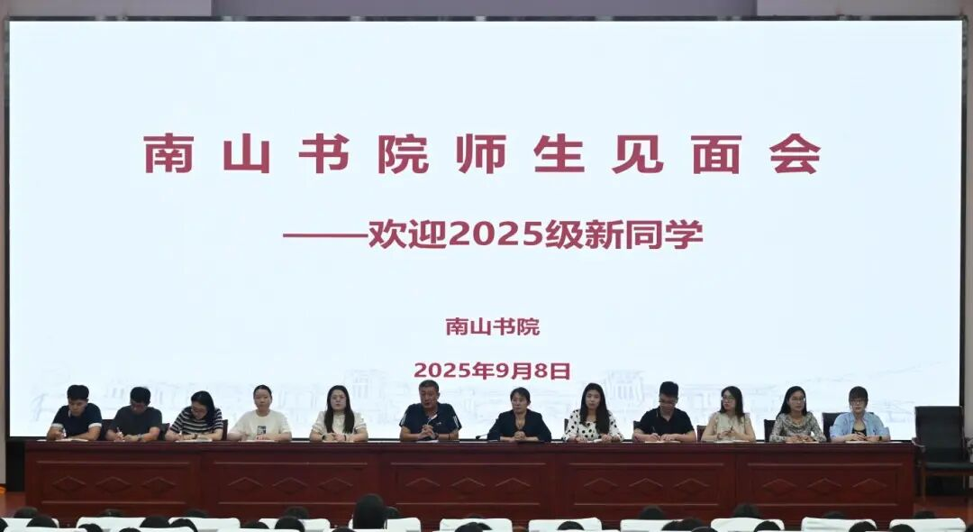 为帮助2025级新生快速融入大学生活,促进师生交流,9月8日,南山书院在行政楼西报告厅举行2025级新生见面会暨入学第一课,南山书院党总支书记、院长杨荣涛,书院全体辅导员及新生参加。