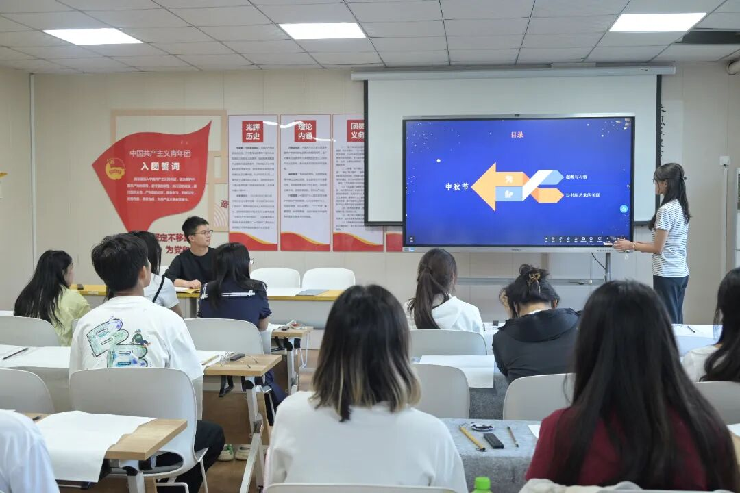 活动内容丰富,涵盖文化讲解、书法体验、互动游戏等环节。活动开始,朱青雨同学以“月韵墨香·情满中秋”为主题,带同学们领略了《水调歌头》《满江红》等诗词之美。在书法体验环节中,同学们手握毛笔,写下对中秋团圆的期盼。在“Emoji”表情包猜谜语环节中,同学们踊跃参与,将现代网络符号与中华优秀传统文化结合。活动现场气氛活跃,欢声笑语不断。