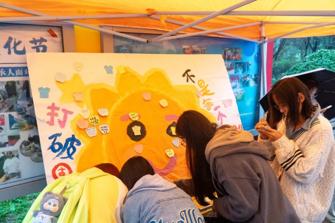 随着活动深入开展,原本空白的展示板逐渐被一幅幅充满创意的画作和一张张满载心声的便签填满,构成了一道承载着理解、接纳与关爱的独特风景线。这片色彩与文字交织的天地,不仅见证了同学们勇敢的自我破壁,也生动地传递出“不是每个太阳都是圆的”——接纳不完美、拥抱多元自我的积极态度。