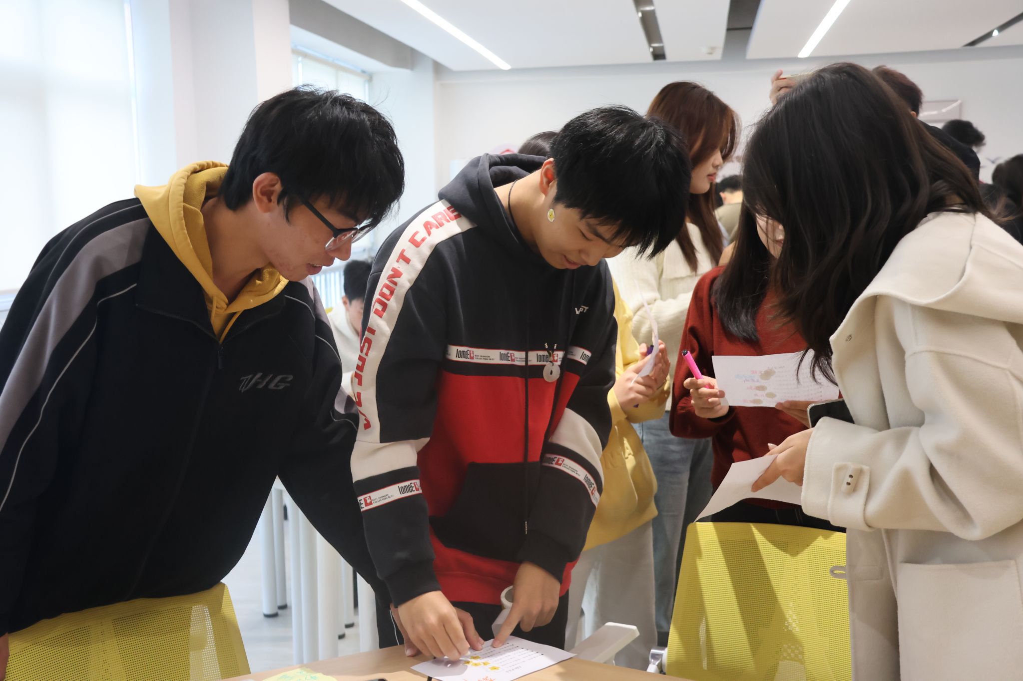 活动围绕“初遇美好”主题,设计了五个循序渐进的游戏环节。活动伊始,同学们通过“初遇名签”破冰相识,在轻松愉快的游戏互动中迅速熟悉彼此;随后开展的“风语逐光”“人际寻宝”“无声接力”等趣味环节,又进一步拉近了新生距离,加强了彼此交流互动。最后,同学们在“寄愿时光”环节中写下对大学生活的期许,将心愿投入“时光邮筒”,为活动留下温馨尾声。