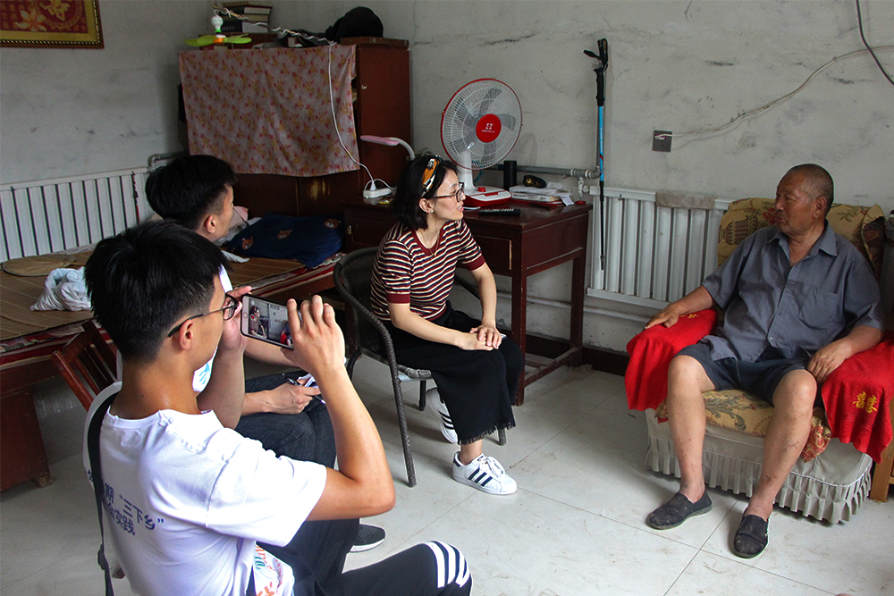 7月10日,“行远筑梦”服务队走进蔺屯村老党员蔺记身和陈好忠家中,了解优秀党员对于社会的贡献。73岁的蔺记身1966年入党,后任村支书一职,他在职46年间,任劳任怨,无私奉献,将优秀共产党员的责任牢记心间,带领蔺屯村脱贫,他也因此得到了全村村民的爱戴。陈好忠是村委的一名退休会计,在村委工作时的他,一丝不苟,全心全意为人民服务,成为了人民口中的好干部。从两位老党员的话语中,服务队师生们了解到身为一名优秀共产党员应该履行的职业和义务,深刻认识到“奉献”二字的深刻意义。