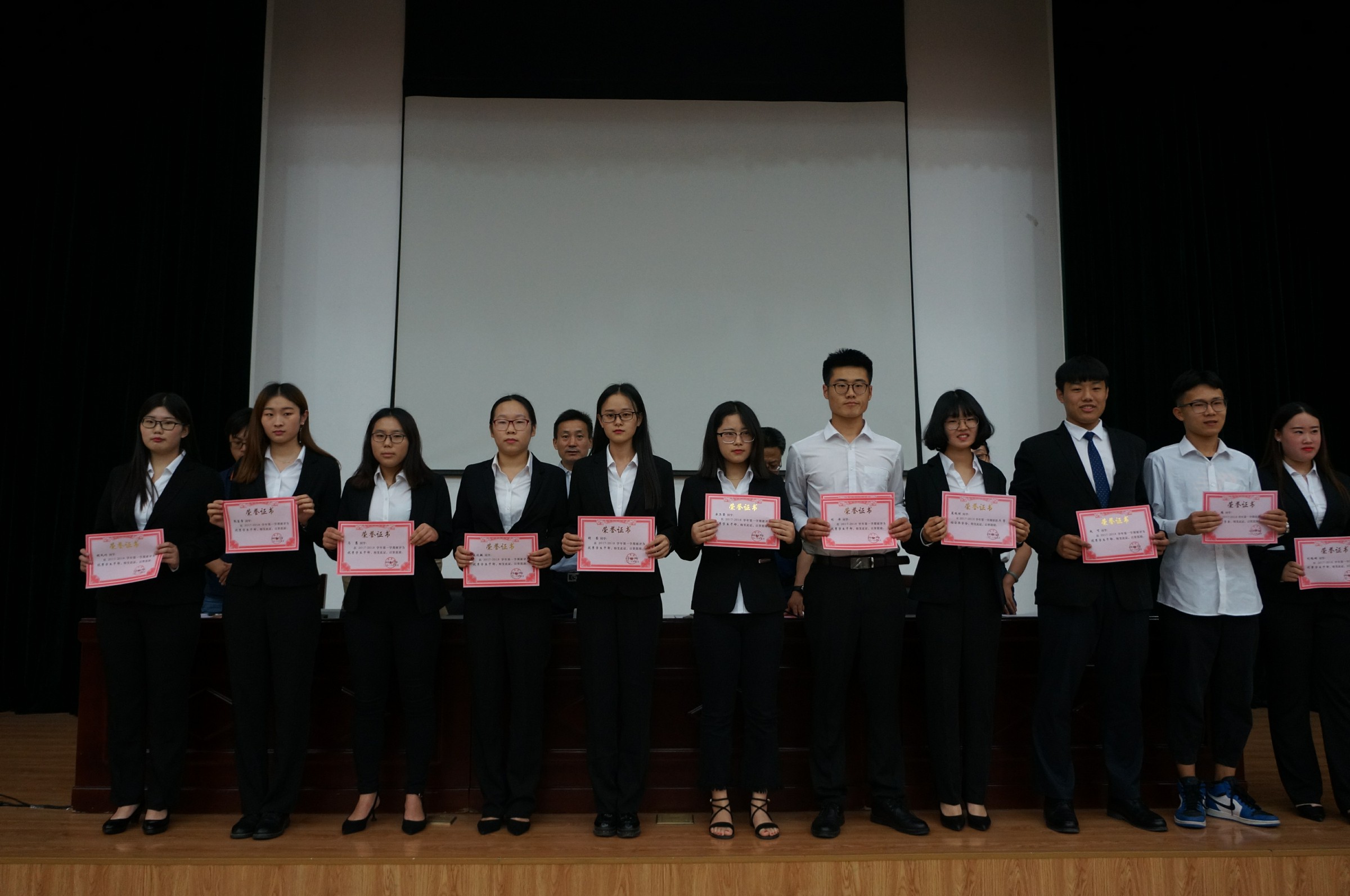 张乐在会上宣读了优秀学生、优秀学生干部、各类奖学金获得者名单。2015级孟瑶、2016级宋欣毓、2017级薛腾三位优秀学生代表上台发言。他们为同学树立了先进典范,极大激励广大学生不断进取、勇创佳绩。