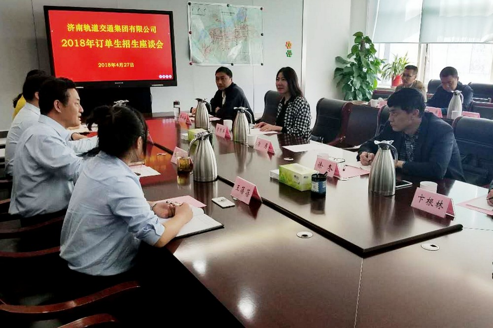 值济南首条地铁R1线全线贯通之际,4月27日,党委副书记徐冬率队赴济南轨道交通集团有限公司(以下简称“济南地铁”),与济南地铁人力资源部长赵东、运营公司人力资源部长赵白雪等,洽谈2018年订单招生相关工作。