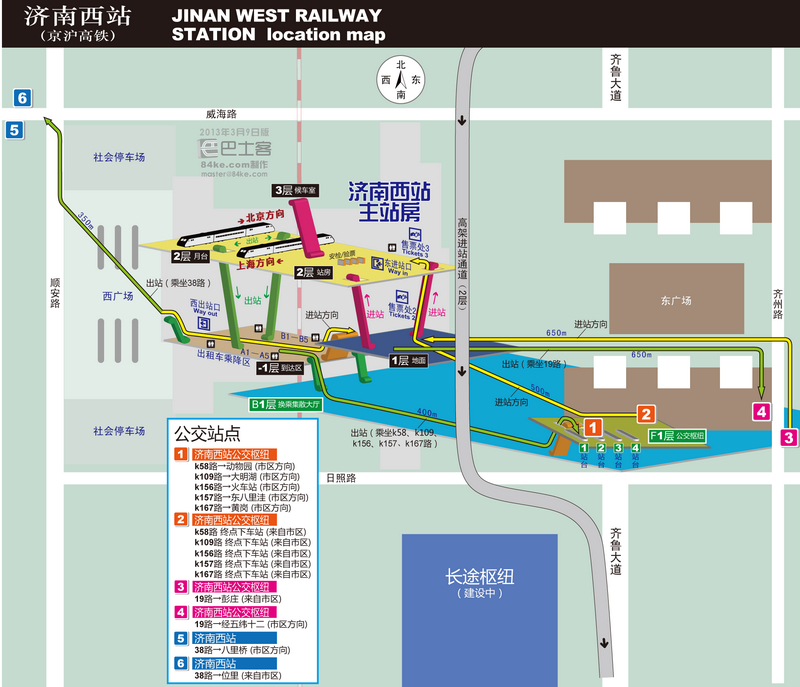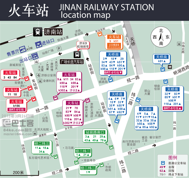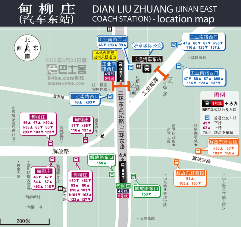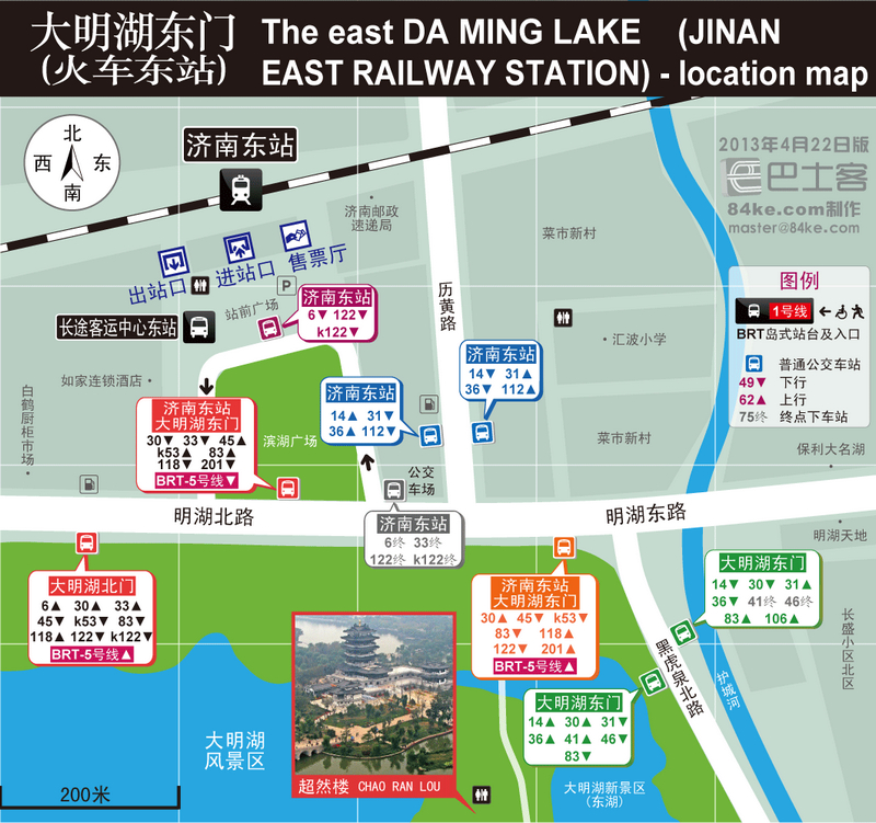 在站外路南的【大明湖东门】乘118路、BRT_5号线到【洪家楼】下,前行150米换乘311路到【埠东村】下;或在历黄路路西的【济南东站】乘31路到【山大路南口】下,原地换乘K301路到【埠东村】下。