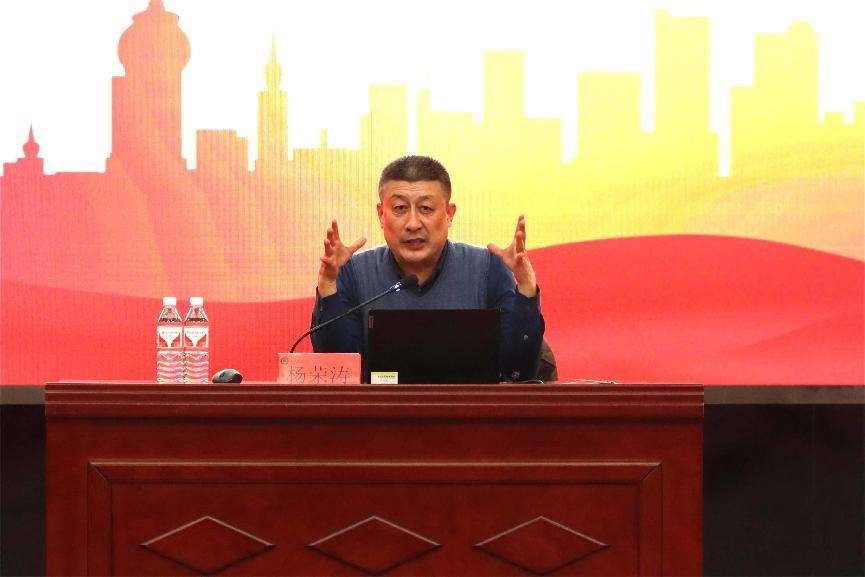 近日,我校在图书行政楼西报告厅举办第四期“鸿鹄大讲堂”主题教育活动,邀请南山书院党总支书记、院长杨荣涛教授做专题讲座,学生处副处长陈俊俊主持。