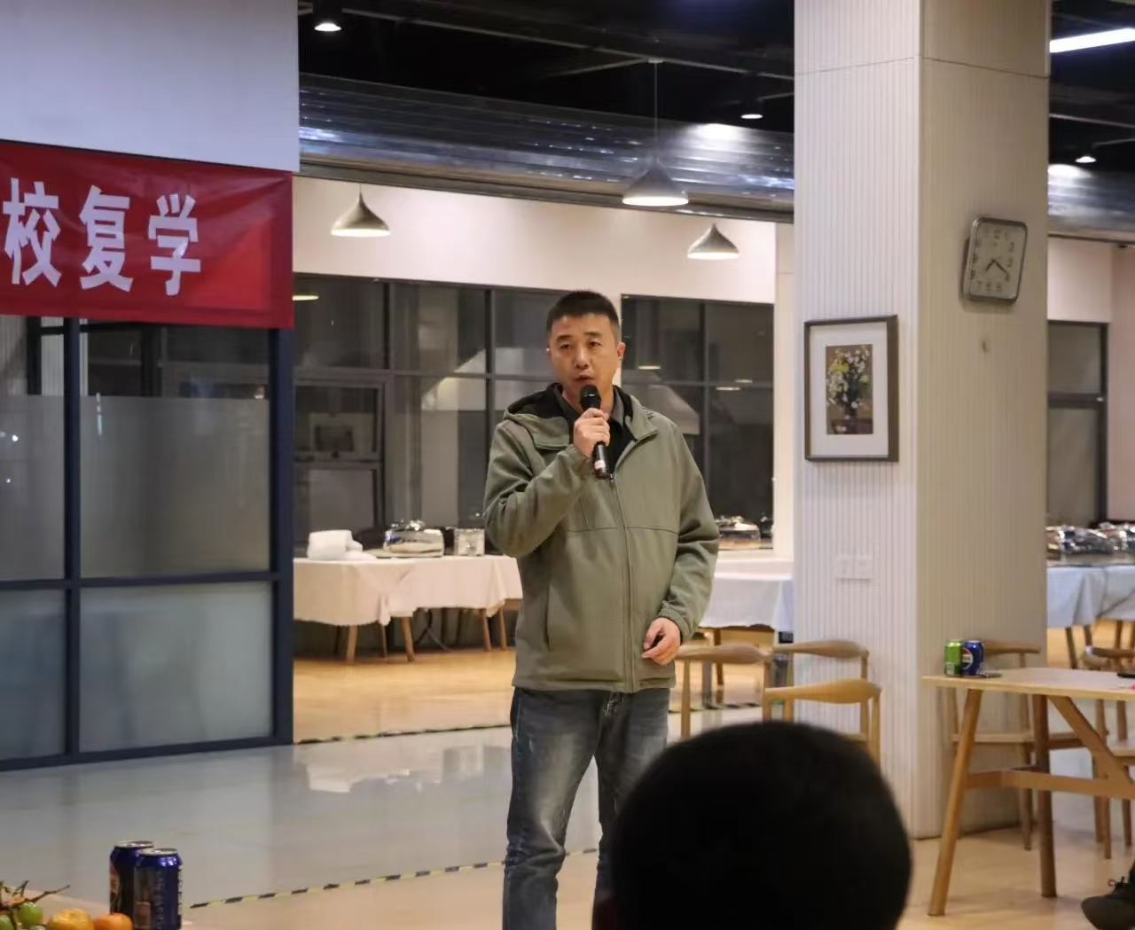 最后,学生处李明坤老师为此次茶话会做总结发言。他向退伍大学生们提出了几点希望和要求,鼓励他们将军人优秀的品质延续到大学生活中,在学业上勤奋努力,在校园生活中积极发挥榜样作用,展现退伍军人的正能量。