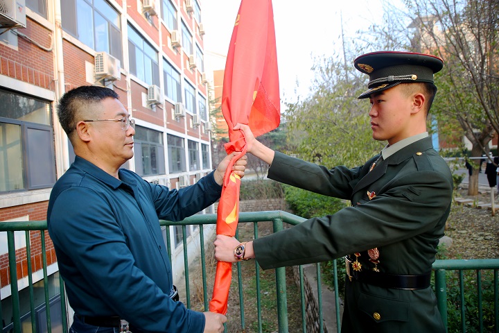 仪式在铿锵有力的《团结就是力量》歌曲中拉开帷幕。仪式上,吕立宁宣布成立“三味戎光先锋队”,并指出:虽然脱下了军装,但退役不退担当,退役大学生要继续发扬部队的优良传统,做严格执行纪律、勇于担当作为、注重自身形象的先锋队。吕立宁为先锋队授旗,先锋队代表王煜仁接旗。