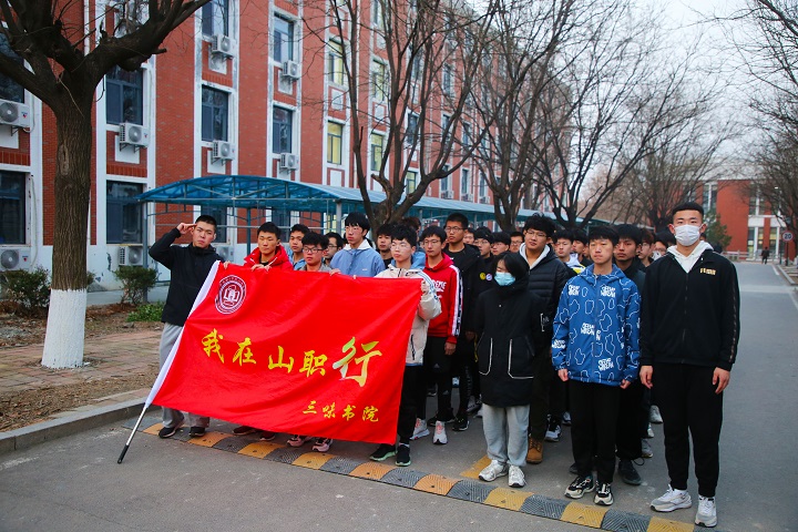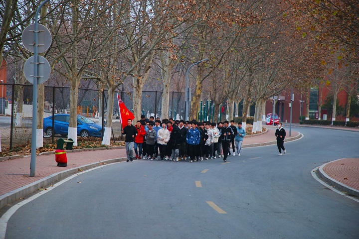 早上六点半,150余名新生迎着寒风准时在2号公寓楼前集合,在学生代表介绍了“一二•九”运动的由来及意义后,环校跑活动正式开始。在随风飘扬的院旗下,三味学子个个神采奕奕、英姿飒爽,行进的队伍以五纵列队排开,脚步铿锵有力,他们尽情享受着清晨的阳光和运动的快感,全然忘记天气的寒冷,胸中唯有缅怀革命先辈、弘扬129爱国精神的一腔热血。