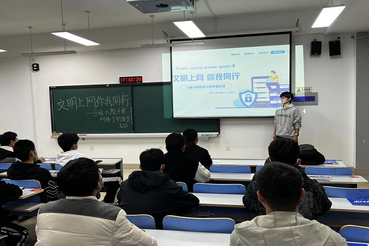 为推动学生自觉遵守网络文明公约,响应文明上网倡议,拒绝网络谣言、抵制网络暴力、守护精神家园,11月17日至23日,三味书院在教学楼组织2020级、2021级、2022级各书社开展“文明上网·你我同行”网络文明专题教育。