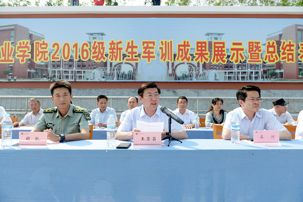 王荣昌在大会上发表了热情洋溢的讲话。他指出,参加军事训练,接受国防教育,是大学生以实际行动履行国防法律义务的具体体现,也是学院培养合格人才的重要举措。通过军训洗礼,同学们学习了基本的军事知识和技能,激发了爱国热情,提高了国防意识,增强了组织纪律和集体主义观念,培养了艰苦朴素、吃苦耐劳的精神品质。大家充分展示了朝气蓬勃、奋发进取的精神风采,也以优异成绩上交了入学之后的第一份合格答卷。