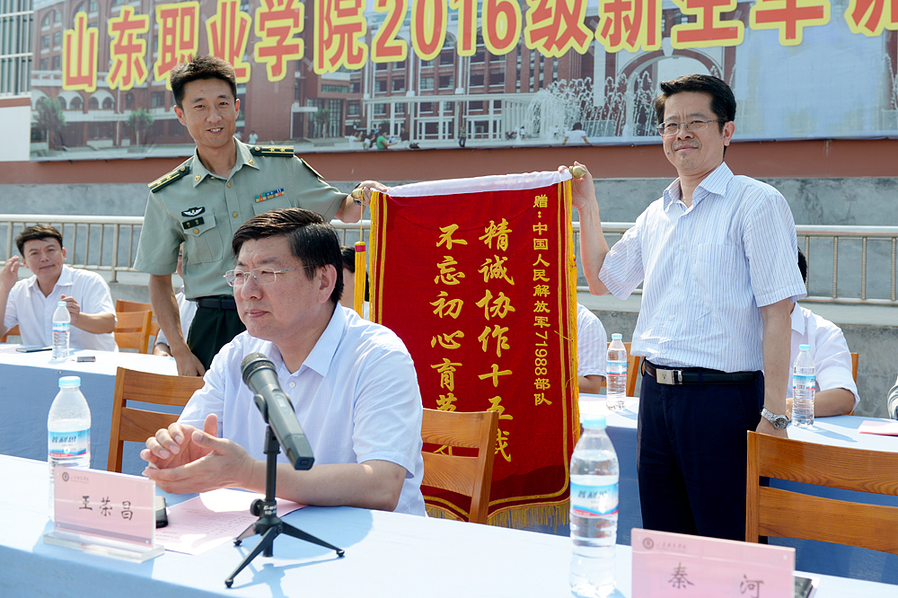 王荣昌寄语新生,巩固发扬在军训中养成的顽强意志和良好品格,增强立德修身的自觉性,树立远大理想,自觉践行社会主义核心价值观,涵养充满定力、专注执着的时代气质,积淀敬业守信、精益求精的职业精神;巩固发扬不怕艰苦、顽强拼搏的精神,增强勤奋学习的自觉性,掌握精湛技能、身怀一技之长;巩固发扬集体主义精神,增强团结协作的自觉性,在大学生活中夯实品格、提升素质、增长能力;尽快融入山职大家庭,做一名勤学、修德、明辨、笃实的大学生,在“劳动光荣、技能宝贵、创造伟大”的伟大时代,人人尽展其才,成就出彩人生。