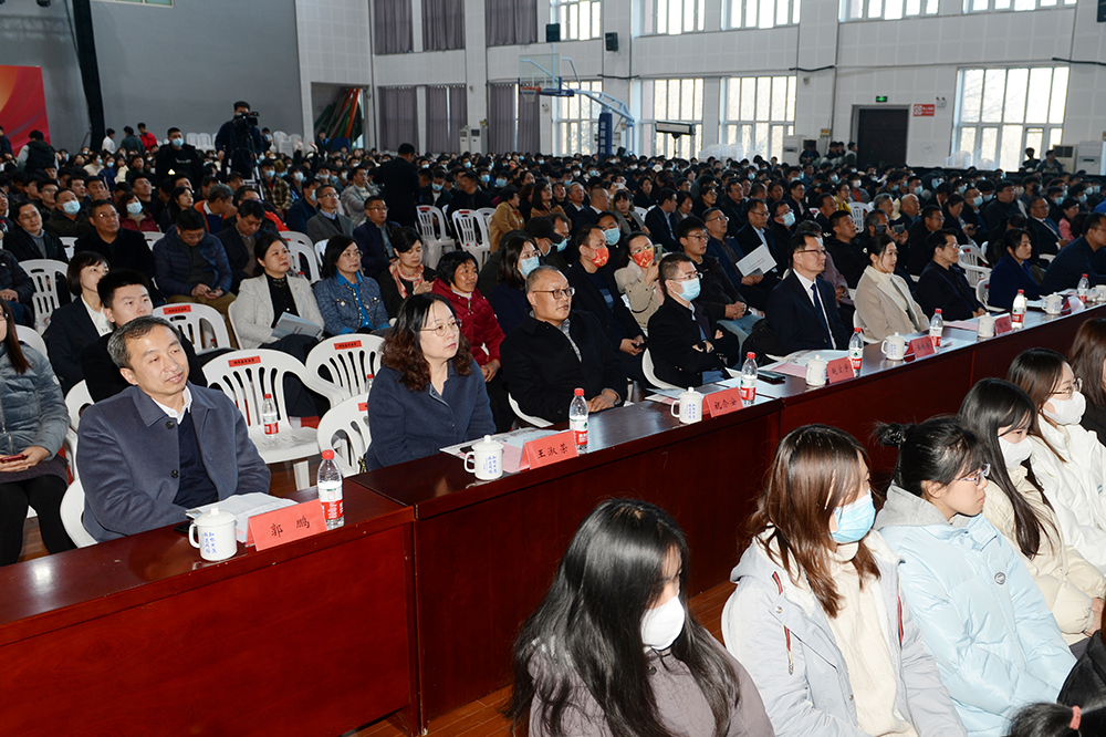 党委副书记郭培谦代表学校向受表彰的同学表示祝贺,向关心和支持学校发展的省厅领导、合作企业及家长朋友表示感谢,向辛勤耕耘的老师们致以崇高的敬意。他寄语全校学子心中要有理想,立志肩负起中华民族伟大复兴的时代重任;肩上要有担当,刚健有为、自强不息,在奉献社会中实现自我价值;手上要有本领,不断提升专业知识储备和技能水平。