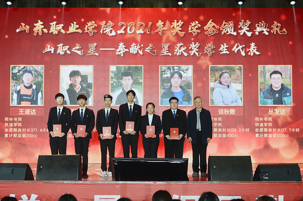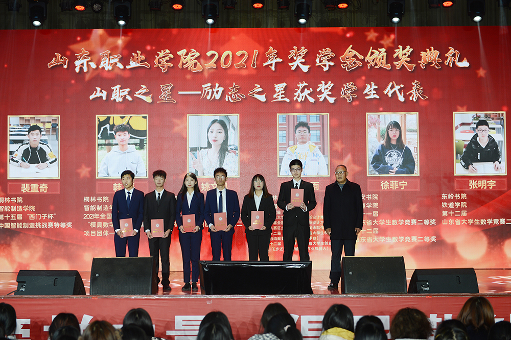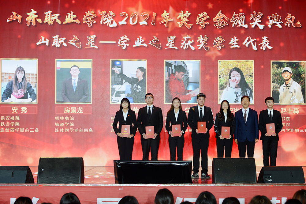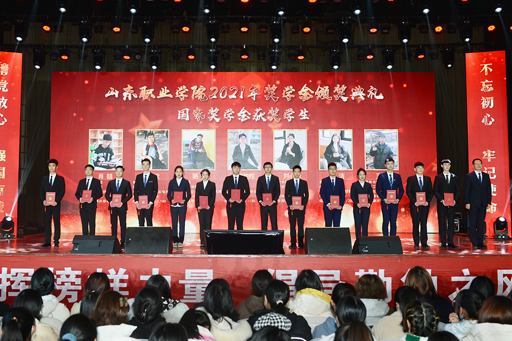 星光红毯仪式后,表彰颁奖仪式正式开始。学校对16名“国家奖学金”获得者、18名“省政府奖学金”获得者、408名“国家励志奖学金”获得者、46名“省政府励志奖学金”获得者、3030名“综合测评奖学金”获得者进行了表彰。授予541名同学“山职之星”荣誉称号,授予63间宿舍“2020年全奖学金宿舍”荣誉称号,特别授予9名同学“山职之星”荣誉奖章。与会领导和嘉宾向获奖同学颁发荣誉证书。