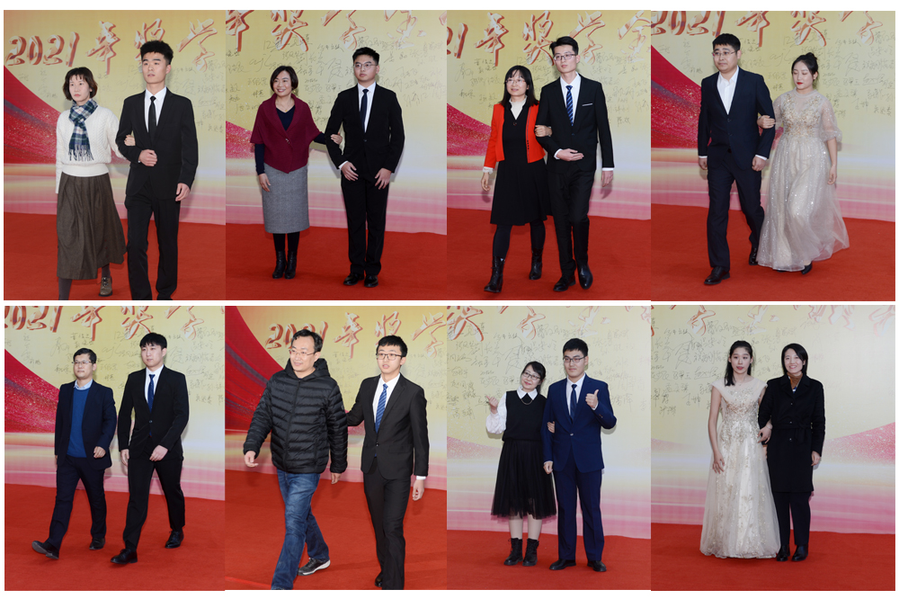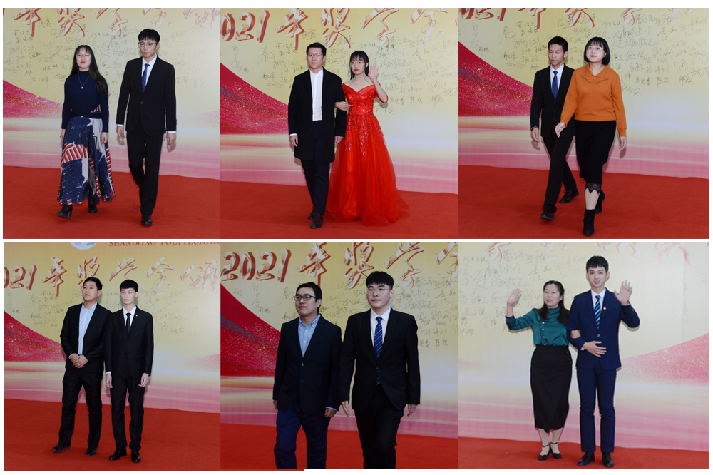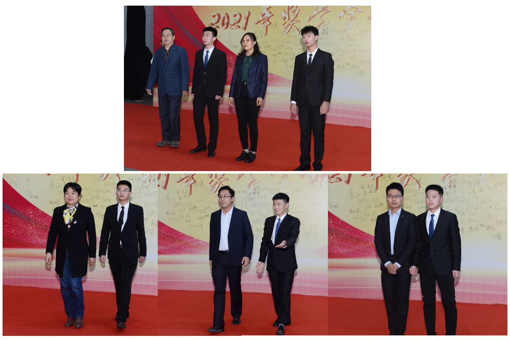下午2:30,一位位身着盛装的国家奖学金、省政府奖学金、泉城奖学金及“山职之星”荣誉奖章的获得者与受邀老师一同走过红毯,在励志墙签名并合影留念,师生共享这一欢乐又庄重的时刻。这种仪式感很强的入场方式,增强了同学和老师的成就感和庄重感,现场掌声、欢呼声不断。