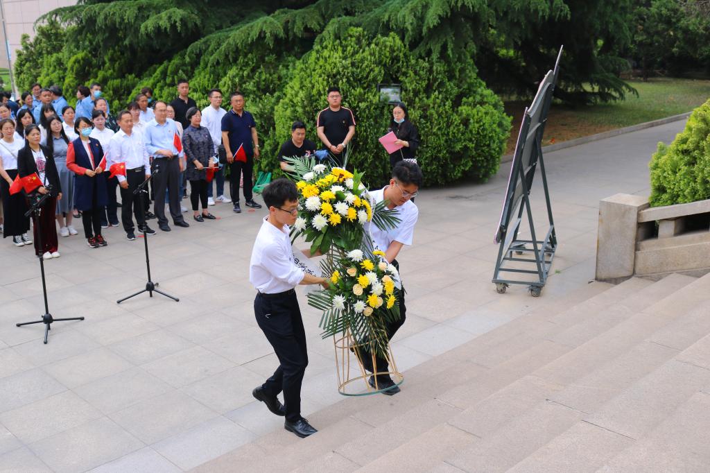 随后,在革命烈士纪念碑前,伴随着深情的《献花曲》,向革命烈士纪念碑敬献花篮。