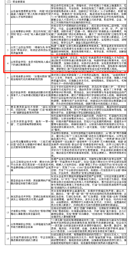 日前,山东省教育厅下发《关于公布2022年度教育综合改革和制度创新十大典型案例和优秀案例的通知》,我校报送的“全员书院制育人模式下的通识教育改革”案例榜上有名,被评为“2022年度教育综合改革和制度创新优秀案例(职业教育类)”。