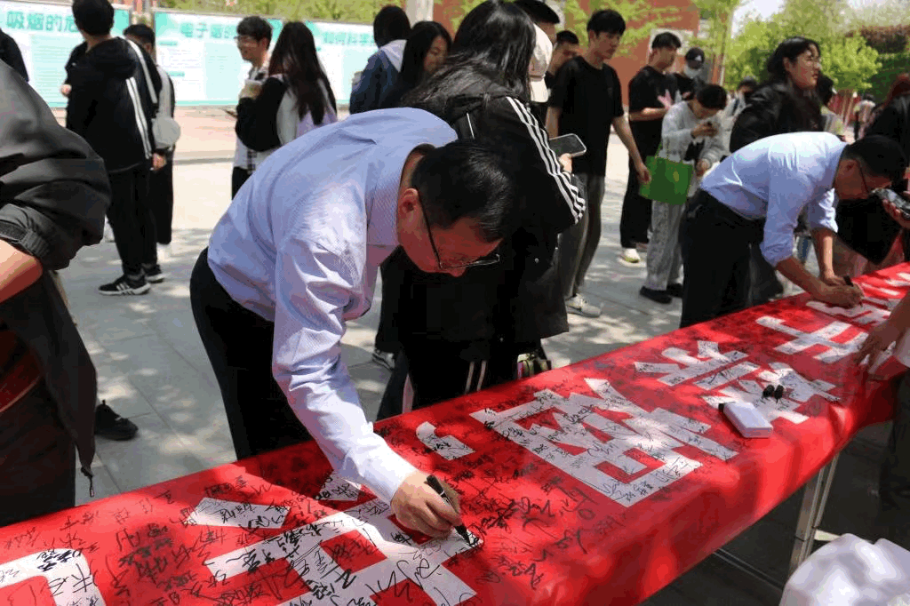 活动中,三千余名师生在“远离烟草,崇尚健康,携手禁烟,共创文明”的横幅上踊跃签字。参与活动的同学们领取了一支支象征着“幸福甜蜜”的棒棒糖,这不仅仅是一份礼物,更蕴含着对同学们远离烟草、珍爱健康的温馨提醒。