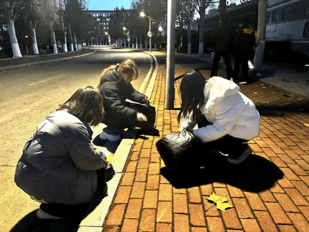 活动伊始,成员们到达各自负责区域,以高度的责任心和敬业精神,有条不紊地开展清扫工作。在三角地、桐林书院楼前以及餐厅门口道路仔细清理着道路两旁因低温而干枯的树枝与落叶,确保每一处角落都整洁有序。东外环和西外环的面积较大,南山书院楼前道路及西篮球场,大家共同将其中的杂物清理干净,保持整洁干净的校园环境。