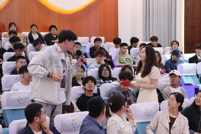 在比赛环节间隙,紧张刺激的有奖竞答互动环节将现场气氛推向高潮,题目围绕学校奖、助学金政策等知识展开,同学们积极参与,热情高涨。