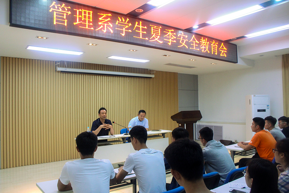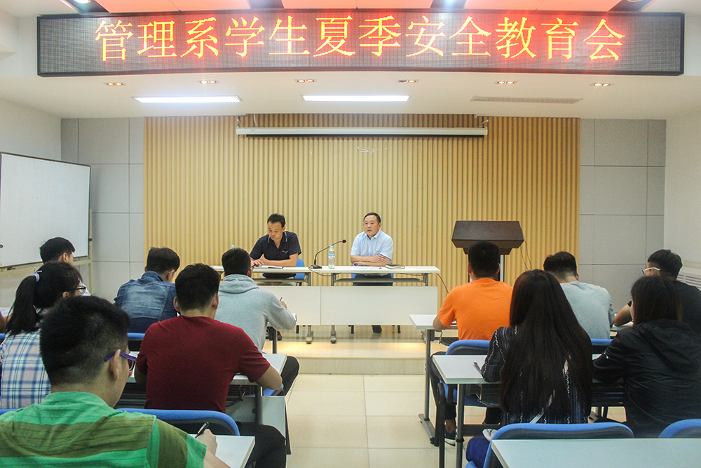 吕书记在讲话中强调,夏季是意外事故的多发期,全系师生要坚守校园安全底线,加强安全教育,落实安全措施,不走形式、不走过场,扎扎实实抓安全;要加强“珍爱生命”教育,同学间要互帮互助、互谅互让,创建安全和谐的校园环境;学生干部要身先示范、做安全和谐的骨干。栾主任从夏季意外事故发生的特点分析入手,从饮食安全、防火安全、交通安全、宿舍安全、网络安全等11个方面的安全注意事项向大家进行重点提醒,希望大家学会自我调节、自我解压,提高自我保护能力。