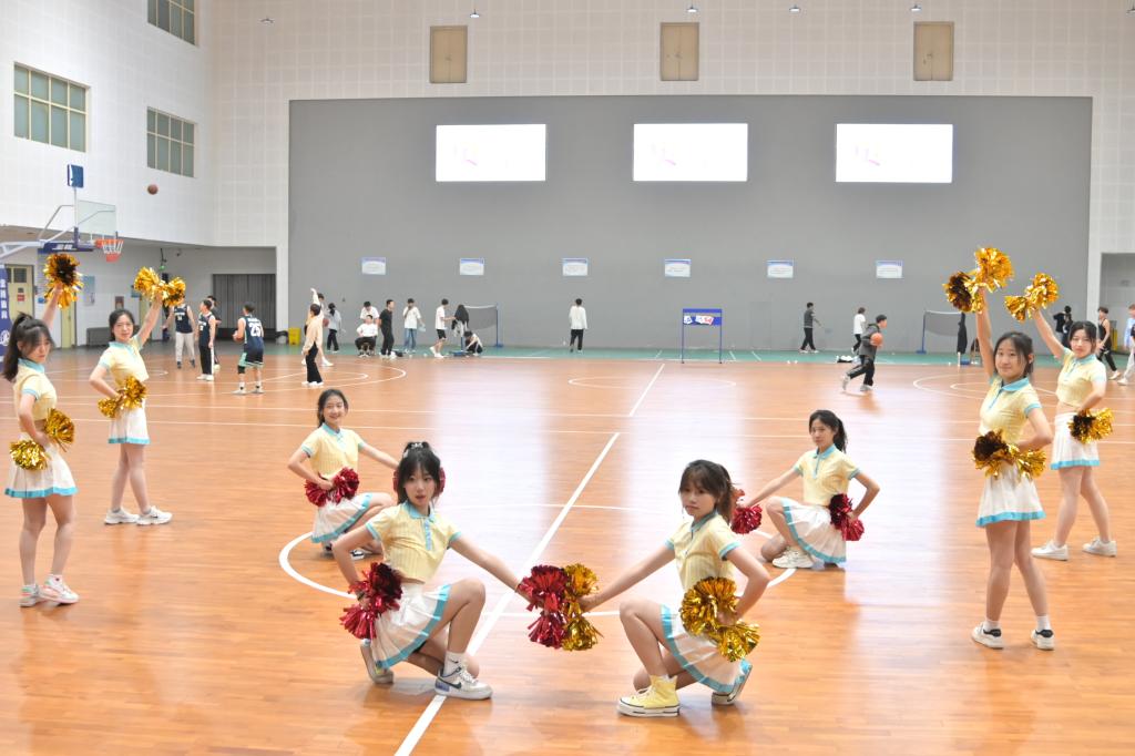 比赛中,队员们个个雄姿英发,动作连贯如行云流水,你争我赶、难分伯仲,上演了一场场极具观赏性的视觉盛宴。平时温柔的女孩们也一改本色,紧盯目标,奋力拼搏,投篮“快、准、狠”,尽显巾帼本色。场外的啦啦队员和志愿者们也不遗余力地为球员加油,哨声和欢呼声响彻校园。
