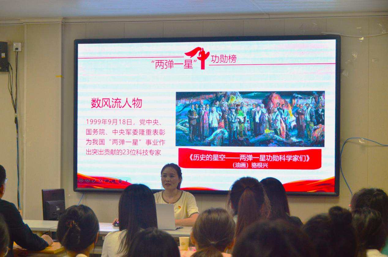 赵晓丽以《中国精神—“两弹一星”精神》为主题,向同学们介绍了“两弹一星”元勋有关情况,讲述了“两弹一星”的研制过程,引领同学们深刻感悟“苦干惊天动地事,甘做隐姓埋名人”“两弹一星”精神的深刻内涵,并对如何弘扬科学家精神进行了重点解读。