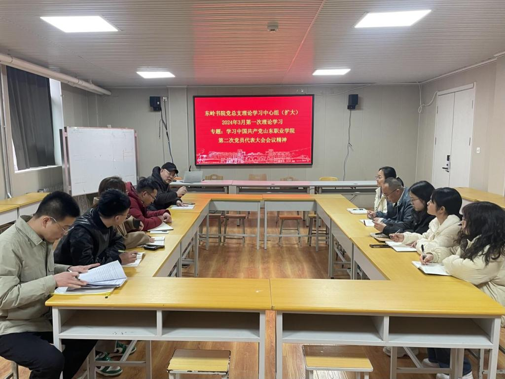 3月4日,东岭书院党总支在八号公寓楼党团活动室召开理论学习中心组(扩大)3月份第一次集体学习会,专题学习学校第二次党代会精神。