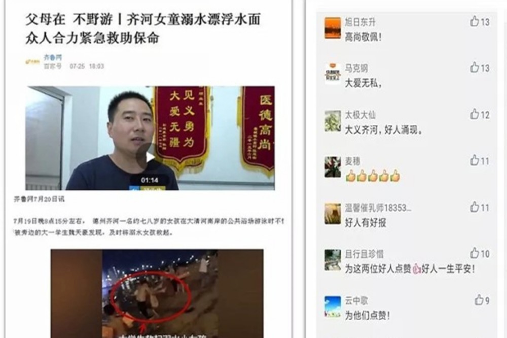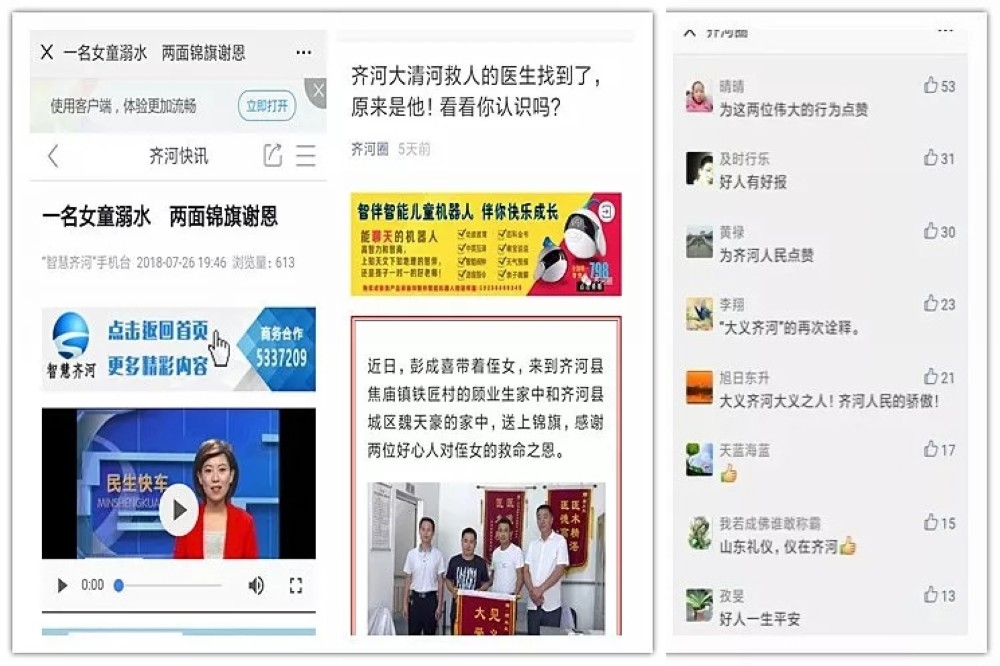 魏天豪见义勇为救溺水儿童的大爱善举在暑假期间也传遍家乡齐河,各级beplay(中国)媒体、微信圈纷纷关注予以宣传报道,赢得了社会各界的广泛赞誉。齐河县委宣传部认证的微信公众号“大义齐河”这样评价魏天豪:最简单的就是善良。用发现美的眼光看待这个世界,用自己的善良感知这个世界,这就是魏天豪的本性。一座城市的灵魂,不仅在于高楼大厦和车水马龙,更在于集体的记忆和共同的气质。当这些东西历经数年,缓慢地积淀,不动声色地萦绕在我们身边,影响着人们的一言一行,成为共同的价值趋向。“身边的世界满是善良”,这就是这座城市一次次温暖我们的原因。