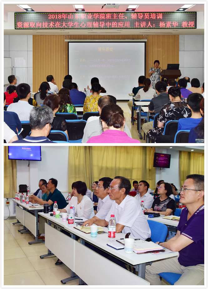 6月6日,我院举办辅导员、班主任心理健康教育专题培训,培训邀请山东省高职院校大学生心理健康教育师资培训基地主任、山东商业职业技术学院心理健康教育中心主任杨素华教授作了题为“资源取向技术在大学生心理辅导中的应用”的专题讲座。副院长祝瑞花及各系党总支书记、学工办主任、辅导员及班主任参加本次培训。杨素华结合学生管理经验和咨询案例,详细讲解了大学生最常见心理问题及应对方式,结合典型案例展示了心理格板技术在大学生心理咨询中的具体应用。通过开展心理健康培训进一步深化了全体学工人员对心理健康教育工作意义、要求、方法的理解,为辅导员、班主任老师开展谈心谈话、心理疏导等学生工作提供了技术指导。祝瑞花在总结讲话中强调了大学生心理健康教育工作的重要性,勉励大家要认真学习心理健康教育知识与技能,不断提升我院大学生心理健康教育工作水平。