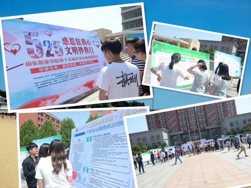本届心理健康节系列活动开展以来,在全院范围内组织开展心理健康教育主题班会,各系党总支书记、辅导员与班主任协同配合形成教育合力,极大地提高了心理健康教育工作覆盖面,通过多种形式宣传心理健康节相关活动,充分利用网络平台集中推送心理健康知识,传播心理健康理念,发布心理健康主题活动通知,使心理健康工作的内容和活动随时随地出现在学生身边。5月25日,我院青年大学生自发组织了心理健康节大型宣传活动,在1200余名志愿者的努力下,在学院广场排出了整齐规则的“525” “我爱我”六个字符,同学们通过这种方式表达和抒发出了珍爱生命、热爱生活的感情和对健康心灵的期盼,体现了我院学子良好的精神风貌。