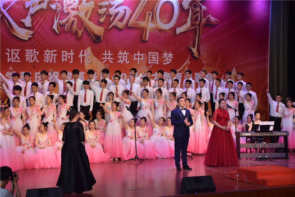 讴歌新时代,共筑中国梦。6月5日下午,由学院团委、学生工作处主办的“歌声激荡四十年”庆祝改革开放40周年青春歌会在南益馆隆重举行。学院副院长祝瑞花、纪委书记祝介安、副院长郭培谦及相关职能处室负责人、二级系(部)负责人和2000余名师生共同观看了演出。