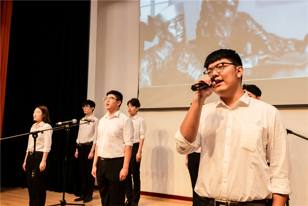 朗诵会在《团结在共青团旗帜下》拉开帷幕,朗诵者们饱含热情,慷慨激昂,精彩的演绎打动了在场的每一位观众,让同学们感受到了身为一名共青团员的使命和光荣。作品《“五四”之火》以五四运动的爆发为背景,以诗歌的形式再现了那段波澜壮阔的历史,深刻诠释了民主、科学、进步、爱国的五四精神。《父亲的家书——写给李万君的信》以父子对话的形式讲述了中车公司高级技师、“工人院士”“高铁焊接大师”李万君的故事,反映了他从普通工人成长为大国工匠的不平凡的历程。经典古诗朗诵《春江花月夜》《朱子语类》带领观众们穿越时空感受古典之美,吟诵协会的同学们带来的原汁原味的古调吟诵《江南》《短歌行》,在展现传统吟诵魅力的同时,也让同学们了解了更多的古人读书之法。