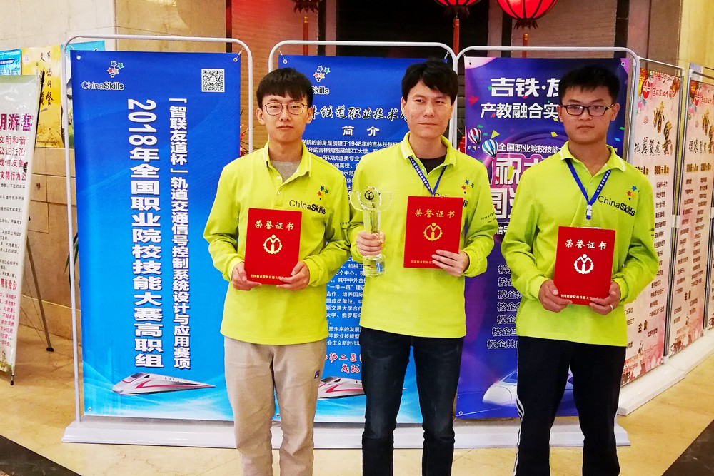 5月27日,由教育部主办的2018年全国职业院校技能大赛高职组“轨道交通信号控制系统设计与应用”赛项举行。本次比赛共有来自全国24个省、市、自治区71所院校的213名选手参加。经过激烈竞争,由我院铁道信号与信息工程系杨文虎主任领队、肖颖、鲜敏老师指导、徐晓辉、黄银、李功行等三名学生组成的团队获得大赛一等奖优异成绩。来自俄罗斯、韩国、肯尼亚、伊朗四个国家60名学生到现场观摩比赛。